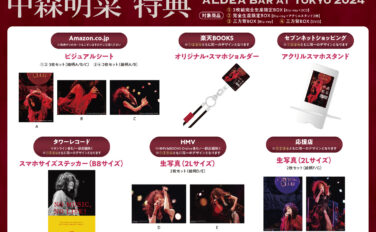 2025年5月1日(木)リリースとなる、中森明菜『FANCLUB LIVE「ALDEA Bar at Tokyo 2024」』の各ショップ特典デザインが決定しました。<対象商品>2025/5/1発売『FANCLUB LIVE「ALDEA B...
